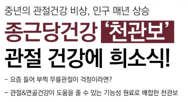 종근당 천관보 가격,효과,후기,할인혜택,먹는법,제품안내,무릎관절에 좋은 약,허리에좋은약,관절 및 연골건강,허리디스크,무릎통증,뼈건강,칼슘,MSM함유